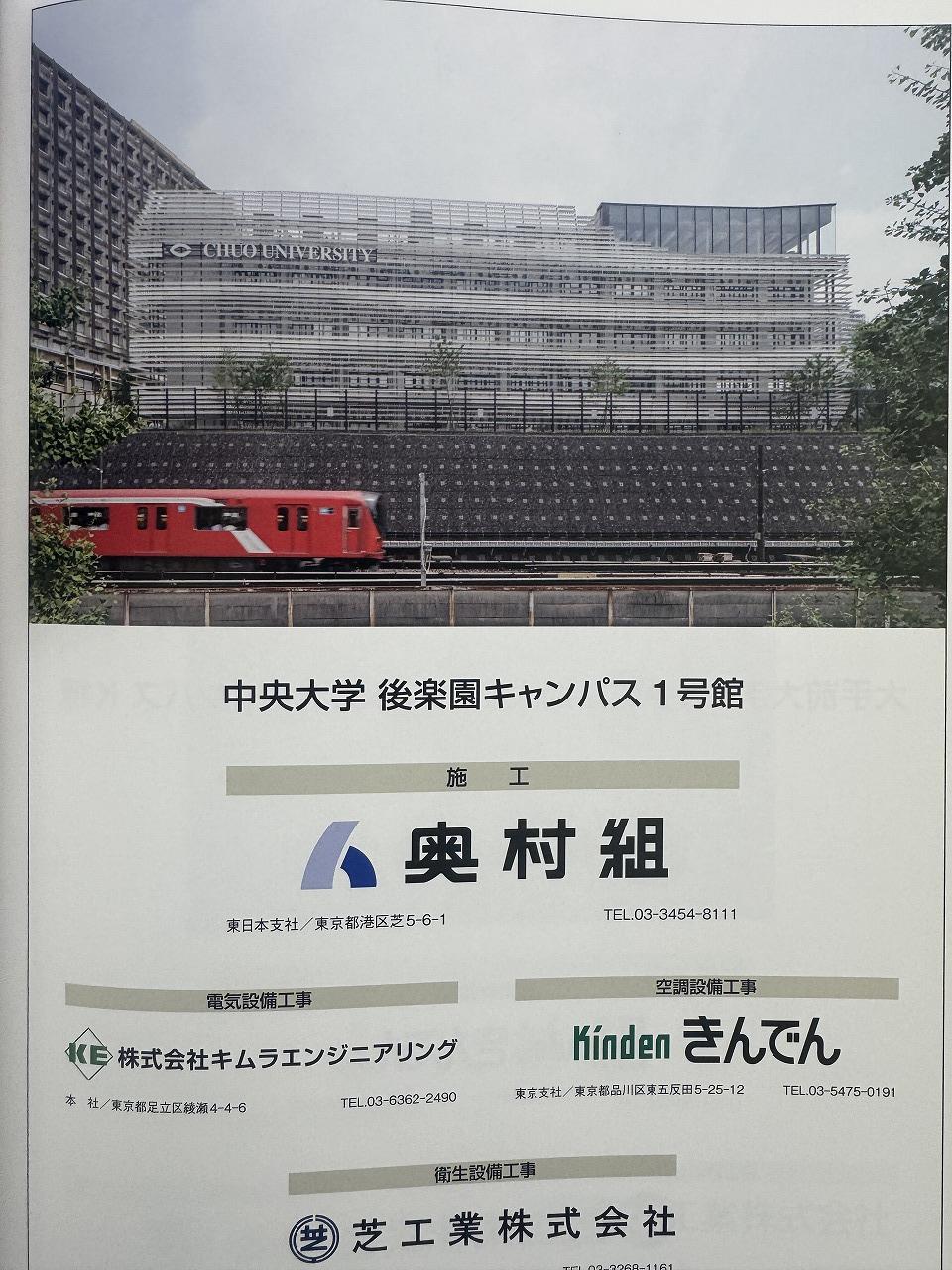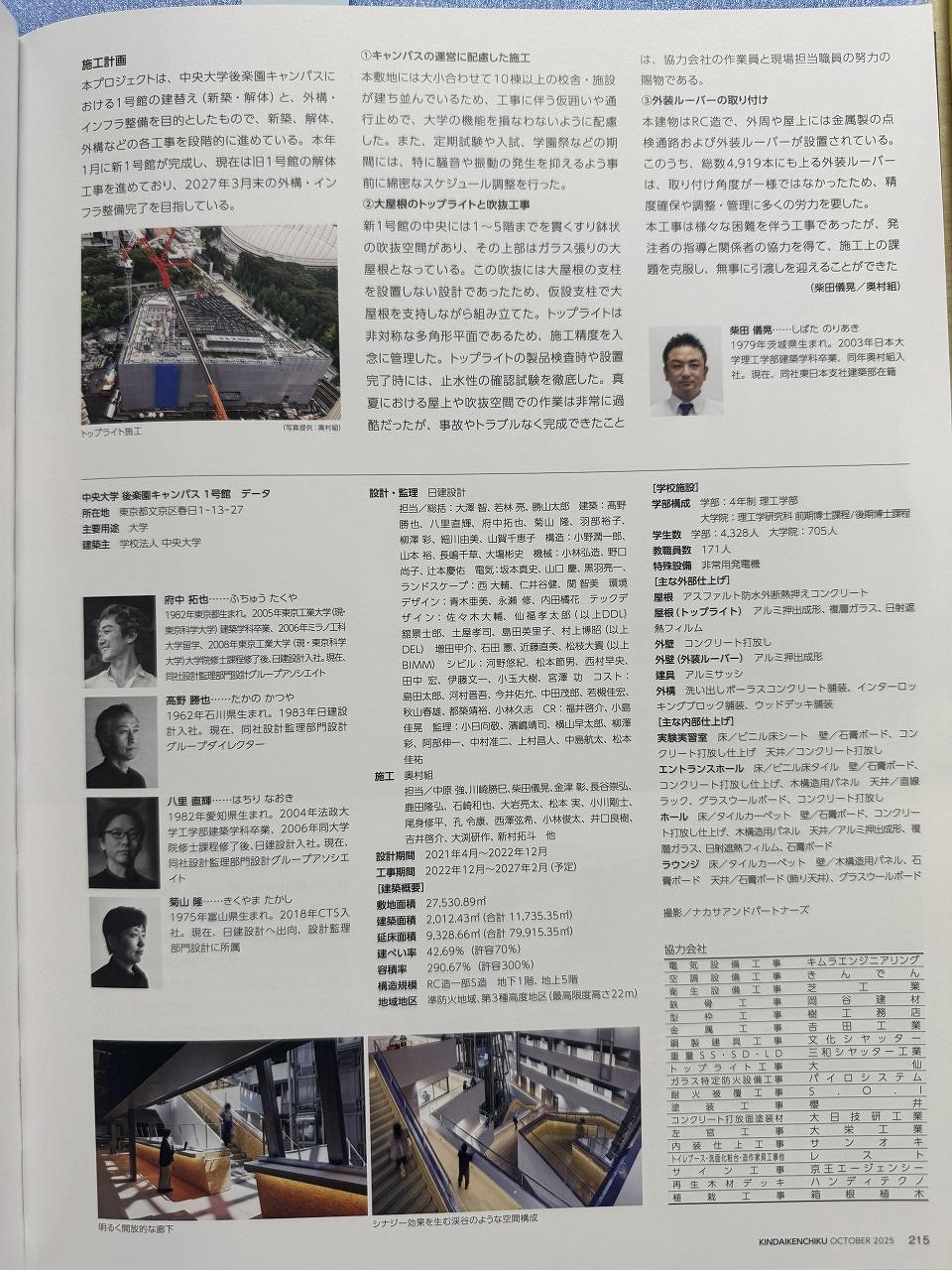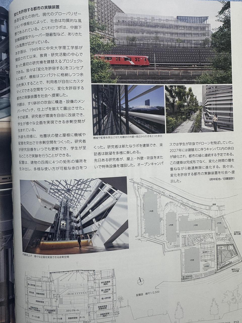 中央大学後楽園キャンパス新一号館が近代建築10月号に掲載され